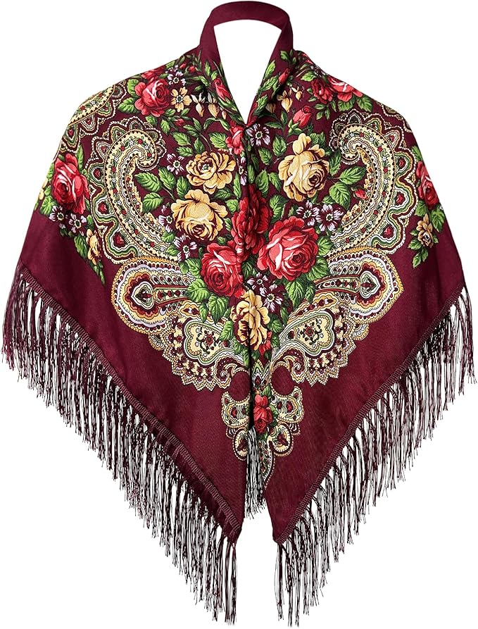 Russian Style Muffler Warm Scarf with Tassel Women's Traditional Scarf Wrap Shawl Fringes Printing Cape