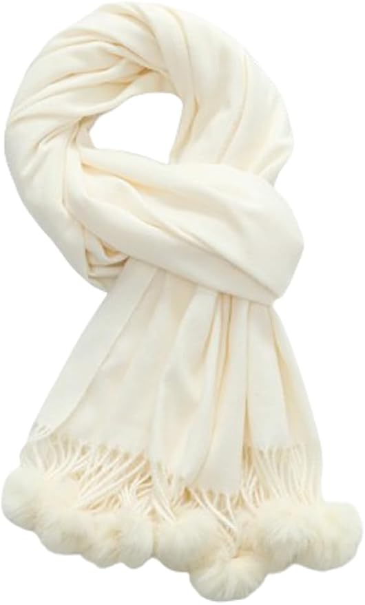 Women Winter Cashmere Scarf Cute Solid Color Long Shawl Wrap Lightweight Warm Poncho with Pom Pom
