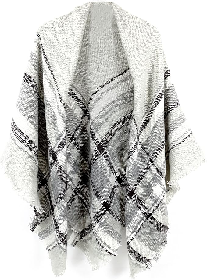 Women's Travel Plaid Shawl Wrap Open Front Poncho Cape for Fall Winter