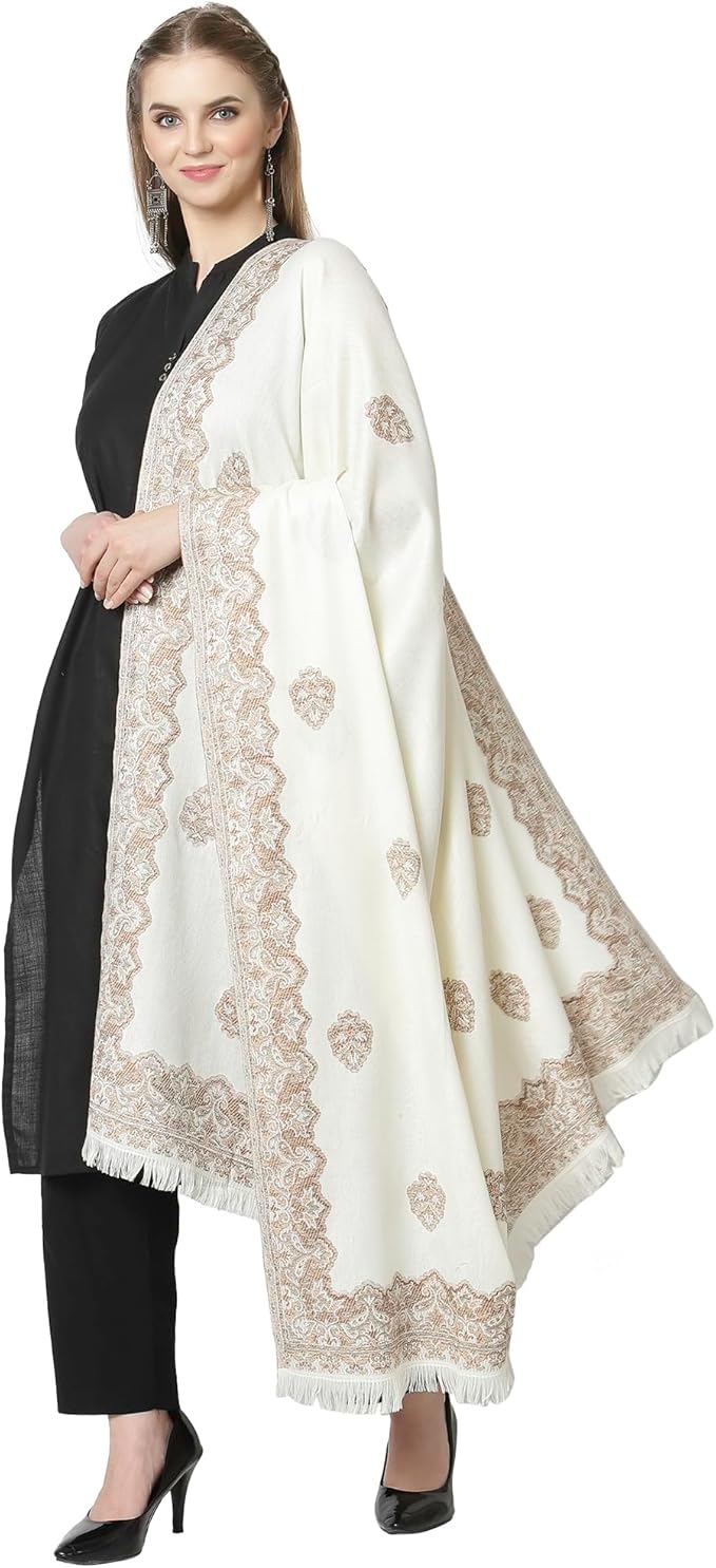 Women's Pashmina Wool Blend Indian Handicraft Woven Shawls, Scarf, Wraps [Large Size: 40" X 80"]