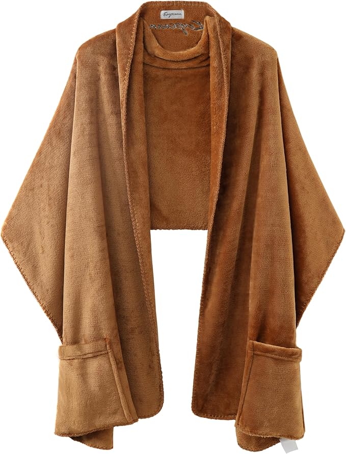 Fleece Wrap Shawl with Large Front Side Pockets for Fall Winter