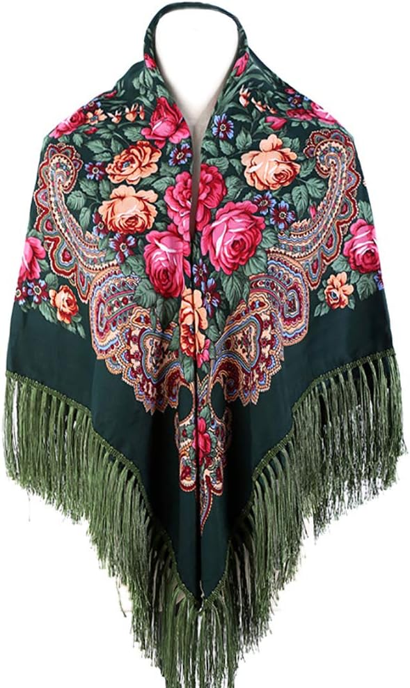 Women's Traditional Scarf Wrap Tassel Shawl Fringes Neck Head Shawl Retro Scarf Floral Poncho Printing Shawl