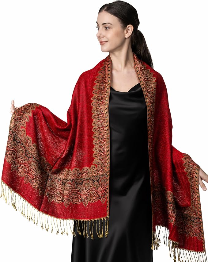 Two Tone Vintage Jacquard Paisley Pashmina Shawl Wrap Scarf