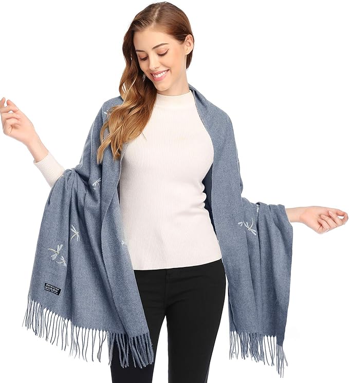 Dragonfly Detail Large Women Soft Cashmere Wool Wraps Shawls Stole Scarf